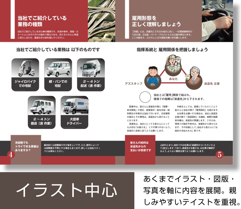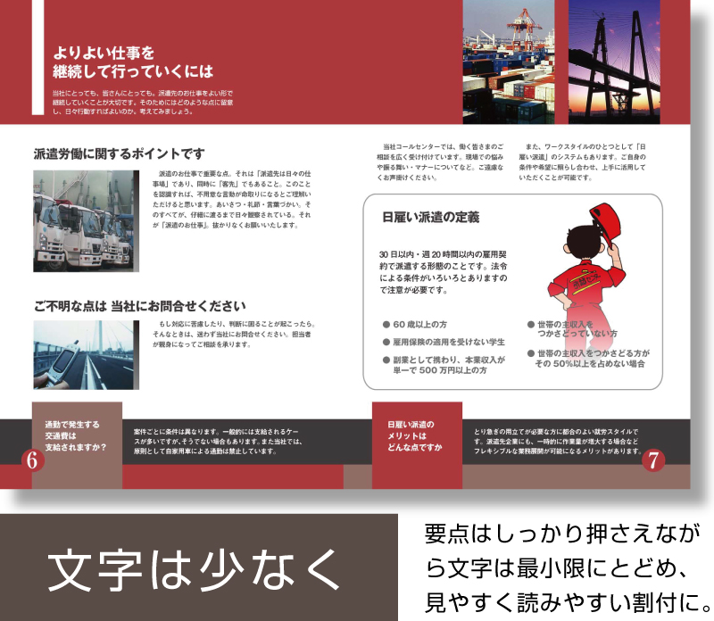 社内研修、派遣登録者研修で大事なことは「形だけで終わらせないこと」。その点、ポケットブック・小冊子があれば、研修後のふり返りが容易に行えます。また動画では一瞬のシーンも、印刷物になることで「じっくり」見て・考えて・議論することができる。そう、動画と印刷物の同時制作には、想像以上のメリットがあるのです。