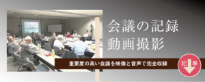 会社・団体さまの社内・外で実施される重要度の高い会議を「動画で」記録撮影します。