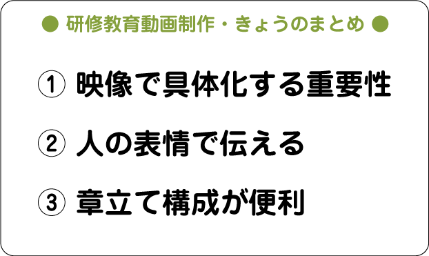 研修用の動画では、何よりも研修内容の説明が主軸となります。これは間違いありません。