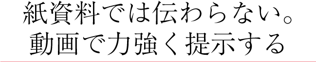 動画なら、効果的に強調したいところにクローズアップさせることもできます。見る側の集中力も、必然的にアップしてくる。