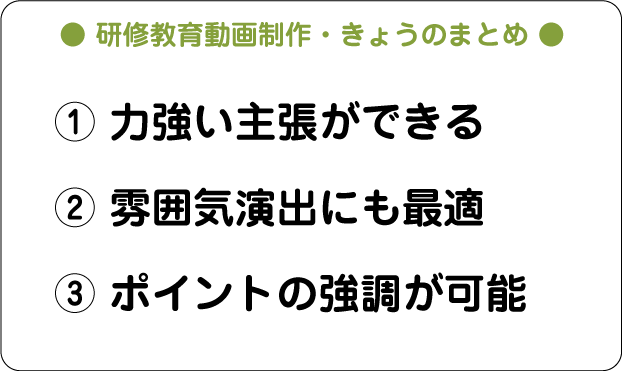 以上のような背景があるがゆえ、研修会での説明に動画を用いるのは、まさに正解といえます。