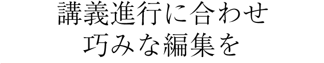 一方で編集も大事な一要素です。当社なら、文字通り「おまかせ」状態で、スイッチング編集の承りが可能です。ぜひご検討いただきたいと思います。