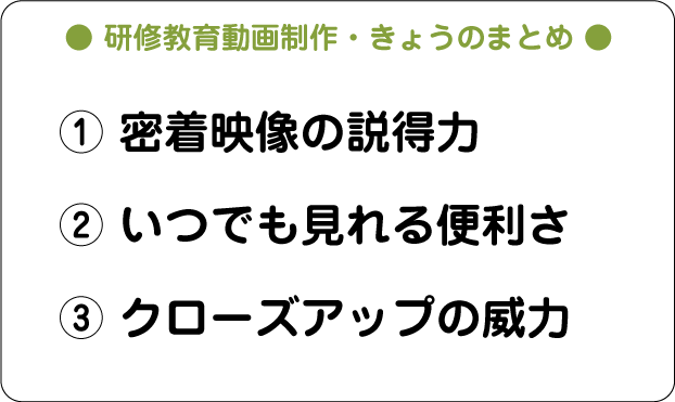 このような有用な研修用動画の制作を検討されてみてはいかがでしょうか。
