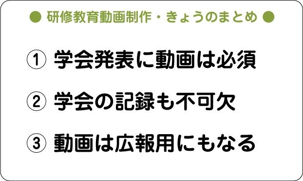 以上、学会の研修会用記録動画案件、いかがだったでしょうか。
