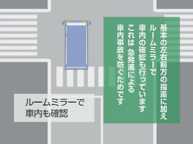 たとえば、曲がり角の曲がり方、指差の仕方、社内マナー、ミラーの活用法、などなど。