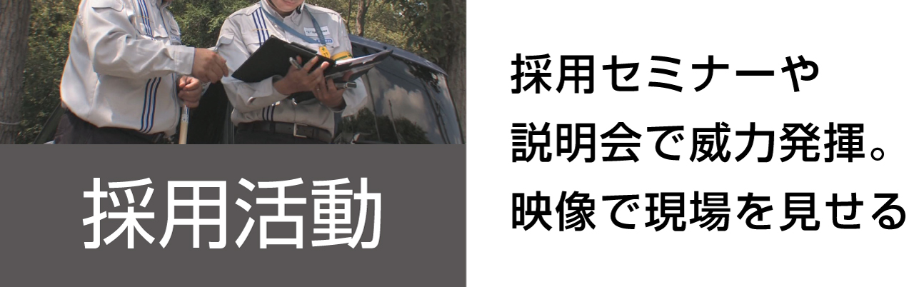 採用セミナーの会場でがぜん威力を発揮するのが「動画」です。エントリーの方々に強く訴求でき、かつ現場の厳しさ、やりがい、面白さを伝えることができる…現場で随時映像を録っておけば、こうした際にすぐ活用できます。