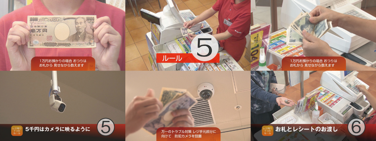 このため、当社制作の研修動画では実店舗でのロケを行っています。そして研修要素は「すべて映像化して」表現。その妙味、ぜひ実際の画面でご覧ください。