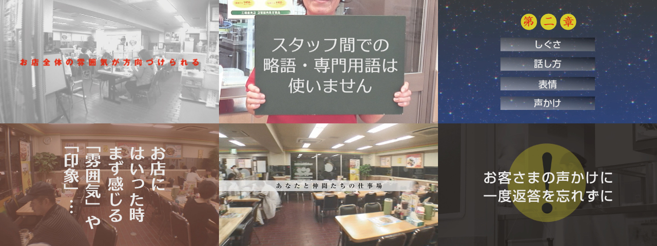 本項では、飲食チェーン店さまの研修動画・実際の作例画面をご紹介いたします。