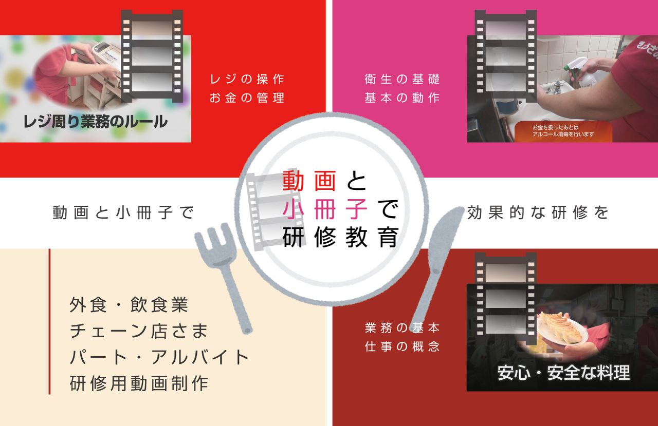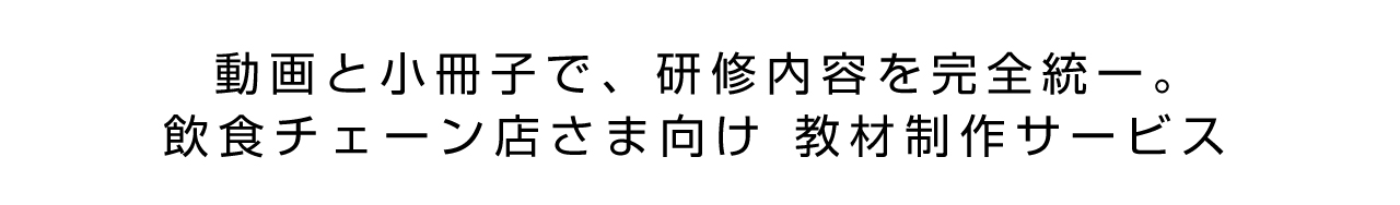 飲食チェーン店さまの、アルバイトさん・パートさん向け研修用教材動画を制作します。動画なら、研修内容を全店舗で統一することができます。また、動画に完全連動したポケットブックもご提案いたします。ポケットブックがあれば、就労時はもちろん、帰宅してからもじっくりお仕事の詳細を復習することができます。大変便利な、研修用の動画と連動ポケットブック。御社でも導入してみませんか?