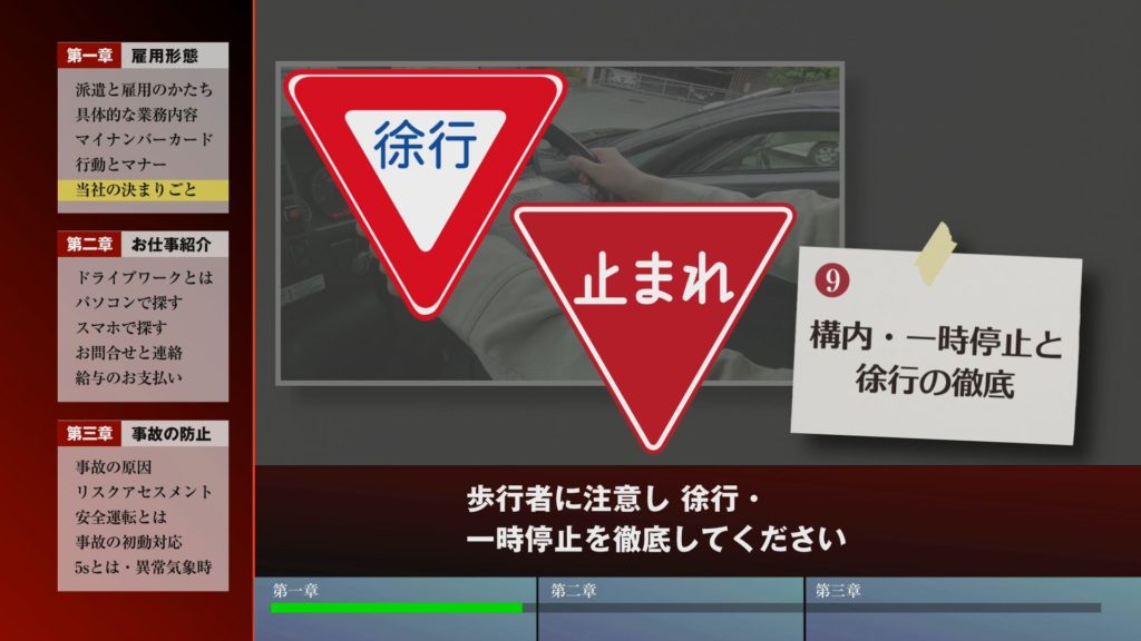 まず即物的なことですが、画面に文字が映ると、人はその文字を読み終わるまで画面から目を離しません。これが大変重要な意味を持っています。しっかりと映像を見る(研修内容を理解してもらう)ために、テロップは重要な役割を果たしているわけです。