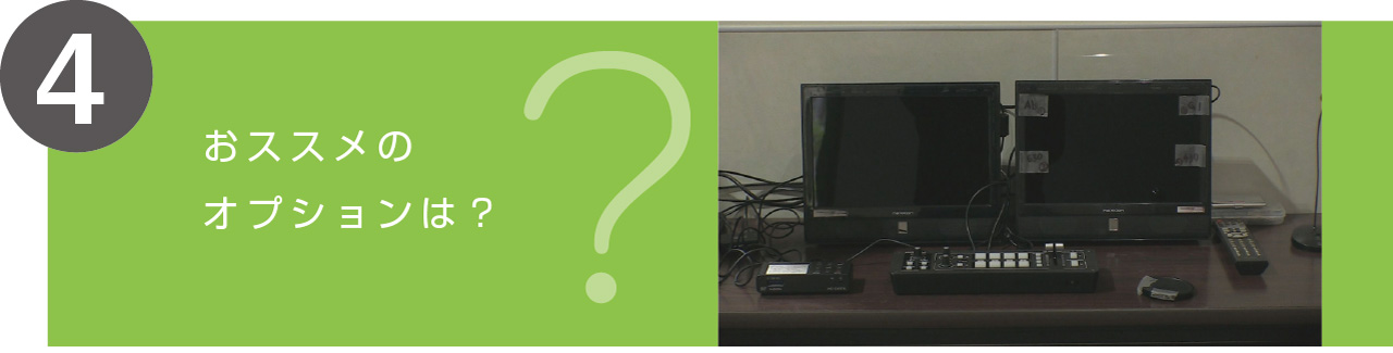 動画中継のオプションは、やはりカメラの増数。通常プランだと4カメラですが、オプションで最大10カメラまで増やすことができます。実際の映像を見ると、4カメラだけだと意外と少ないことに気づかされます。万全な中継映像をご希望される場合、可能なら最低8台のカメラを設置したいところです。