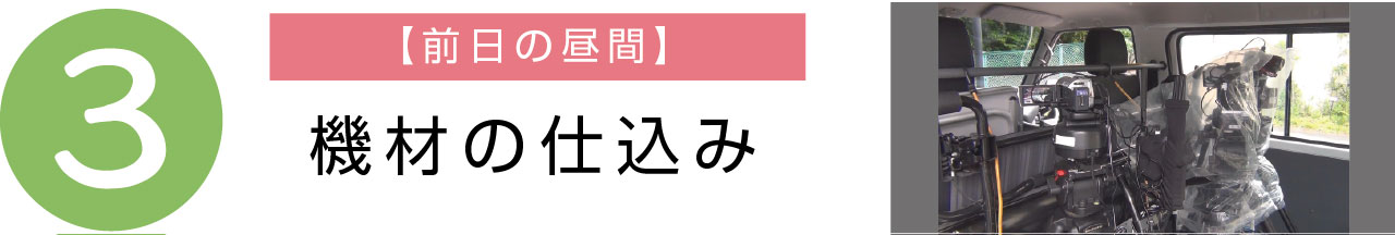 ここまでご紹介してきた「運動会の動画中継サービス」、いかがだったでしょうか。最後に、当社映像中継の現場をちょっとだけご紹介します。運動会中継の前日、および当日の様子を写真で追ってみました。業者がどのような動きで、どのような機材を運んで業務を行っているかが少しだけ見ていただけるかと思います。いわば「運動会の映像中継舞台裏・プチドキュメント(笑)。ではさっそくご覧ください。