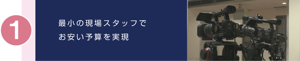 当社のストリーミングサービスは、1名の現場スタッフで全ての作業対応をいたします。この超少人数体制により、3時間で5万円の低価格を実現(2カメラプランの場合)。もちろん高品質な中継品質も自慢です。これまで以上にお気軽に動画中継をご活用いただけます。