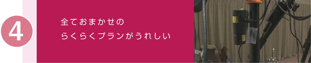 また当社では、充実内容の●「4台カメラプラン」、リーズナブルさが魅力の●「2台カメラプラン」の2種類をご用意。ご予算やイベントの内容に合わせてお選びいただくことが可能です。